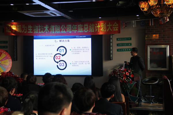 2018年1月8日,遼寧凱為生物技術(shù)有限公司2017年年度總結(jié)、表彰及2018年年度計(jì)劃大會(huì)在錦州西部音樂(lè)烤場(chǎng)一樓宴會(huì)大廳隆重召開(kāi)。 公司全體員工參加了此次會(huì)議。