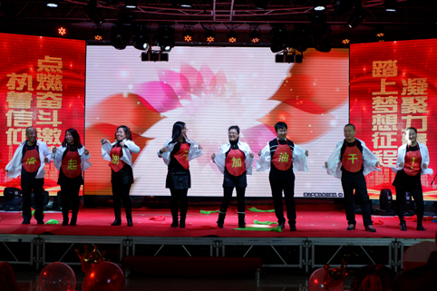 在聯(lián)歡會的現(xiàn)場,華麗舞臺燈光璀璨,背景制作喜氣祥和,一派喜迎新春的美好盛況,那一首首悅耳動聽的歌曲,那一段段優(yōu)美豪放的舞蹈,那一個(gè)個(gè)風(fēng)趣搞笑的互動小品.......在舞臺上傾情巨獻(xiàn),精彩紛呈,掌聲與喝彩此起彼伏,現(xiàn)場氣氛熱烈、喜氣、祥和,凱為人的魅力與風(fēng)采在這一刻光芒四射,凱為人的才藝在這一刻八仙過海!!